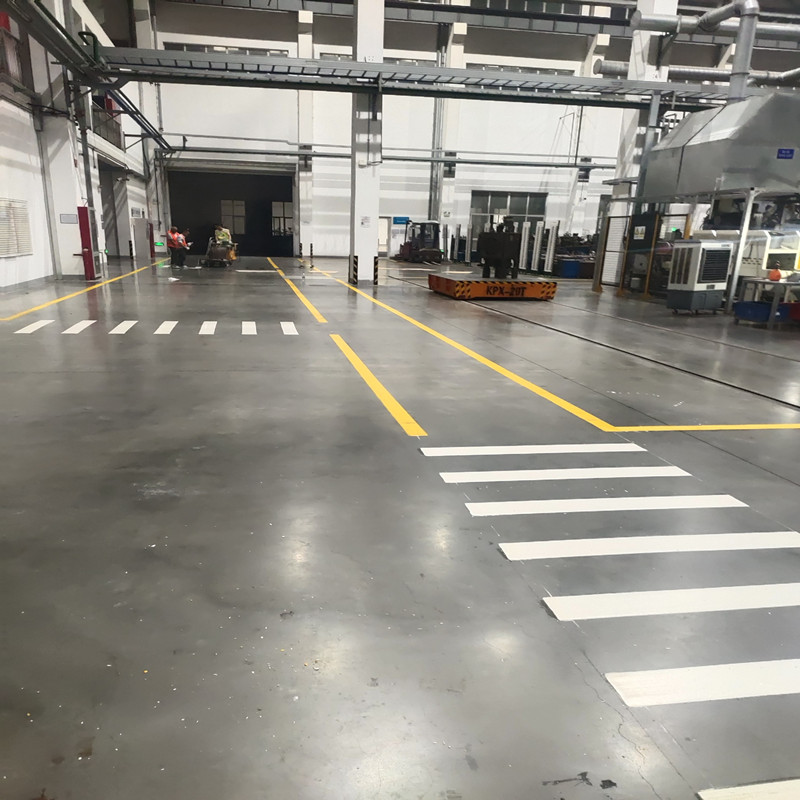 厂区车间内部画线重点在于区分功能区域。生产作业区、通道区、物料暂存区需通过不同颜色标线明确划分。黄色常用于通道边界线,绿色代表安全区域,红色则标识禁入或危险区。叉车通行路线应单独标记,并配合警示语提升操作安全性。此类画线多采用环氧树脂或聚氨酯地坪漆,具备耐磨、耐压、防滑等特性。